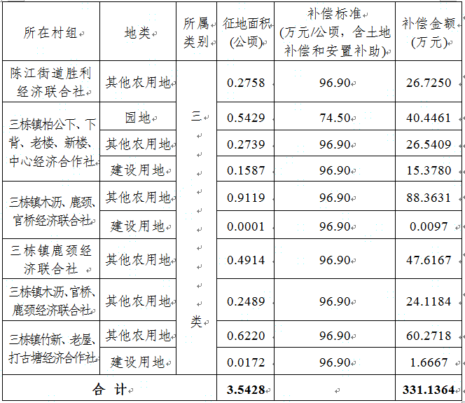 為加快我高新區規劃建設,進一步完善投資環境,推進經濟發展,我高新區擬征收陳江街道集體土地0.2758公頃、三棟鎮集體土地3.2670公頃,共計3.5428公頃。上述土地已規劃為城市建設用地,符合我高新區土地利用總體規劃。經認真聽取被征地村組及村民意見,根據《廣東省國土資源廳關于印發廣東省征地補償保護標準(2016年修訂調整)的通知》(粵國土資規字〔2016〕1號)和《惠州市集體土地征收與補償暫行辦法》(惠府〔2017〕189號)規定的補償標準,我高新區擬訂了征地補償安置方案,并予以公告。具體征地補償安置情況如下: