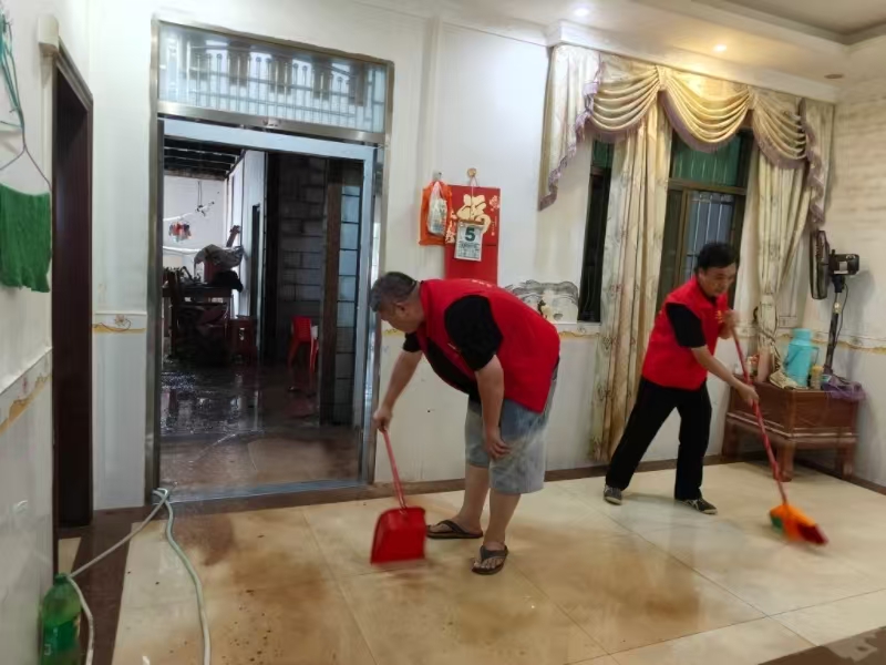 積水逐漸退去后,蘇晉煜又帶領(lǐng)村組干部和黨員志愿者們第一時間幫助村民開展清淤、消殺等工作。村民蘇水容望著家中忙碌的“紅馬甲”,感動地說:“有他們在,我們心里就踏實!”